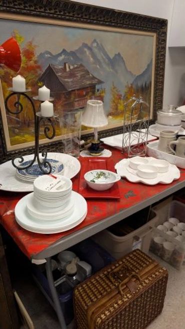 Some photos are shown below now, many more will be added Thursday night and Friday inc Furnishings, Lg Tool Cabinets, etc. We are still in the process of opening cartons & setting up auction. We were moving goods during snow storm so some photos were taken during the move showing snow on them.